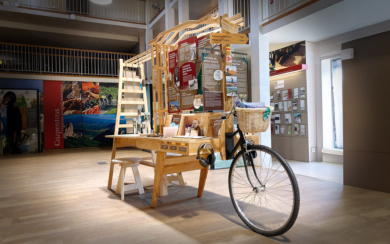 Le Parc Naturel Régional du Mont-Ventoux a souhaité créer des points d’accueil innovants pour valoriser son territoire auprès des visiteurs. L’objectif était de développer des « Relais du Parc » qui permettraient de mieux communiquer sur les actions du PNR, de présenter la richesse du territoire et de sensibiliser le public à la biodiversité exceptionnelle du Mont-Ventoux, tout en créant une véritable expérience pédagogique immersive.